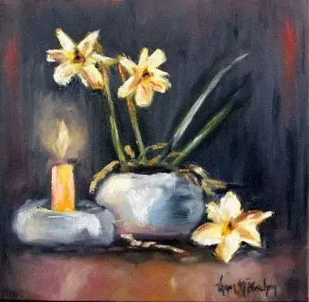 Meu interesse começou em 2006, quando tive aulas de artes durante meu curso de design de interiores (iniciado em 2004). Fiquei fascinada pelas obras dos grandes mestres e, no dia seguinte, já estava procurando uma professora. Desde então, nunca mais larguei os pincéis. Pintava nas aulas e em casa, praticando sozinha..